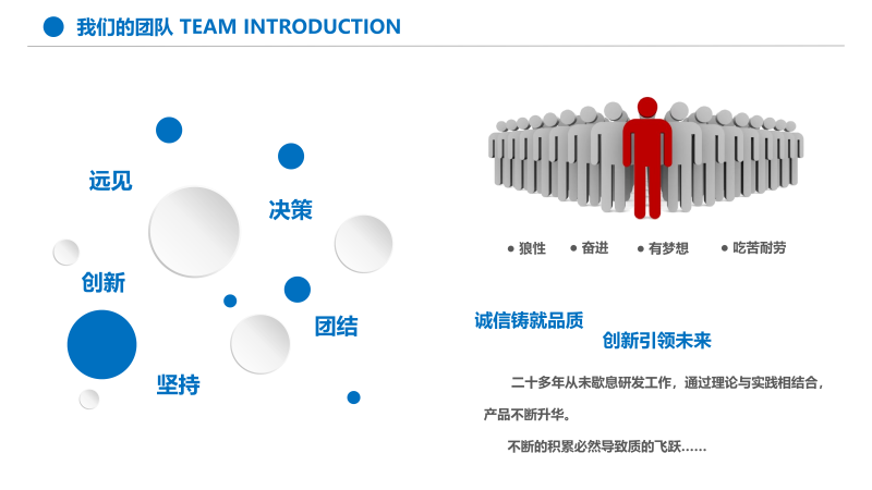 企業精神:務實、高效、嚴謹。市場意識:思路決定出路;競爭貴在品質。